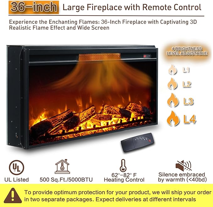 - 3D Flame Effect: Experience the warmth and beauty of a 36-inch large screen fireplace with stunning 3D simulated flames. Transform your living space into a cozy retreat, as the lifelike flames flicker and dance, creating a mesmerizing ambiance. The fireplace TV cabinet brings a touch of luxury and relaxation, while adding an elegant centerpiece to your home decor.