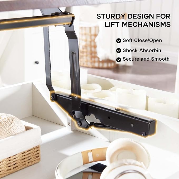 - Lift Top Design: This lift top coffee table allows for easy adjustment of different heights and provides both enclosed and open storage spaces. Its sturdy metal lift structure ensures smooth and even lifting and lowering of the tabletop, providing a perfect workspace for your office needs. Large hidden compartments underneath the coffee table top store everyday items such as remotes, books, mugs, game consoles, etc. and keep dust out.