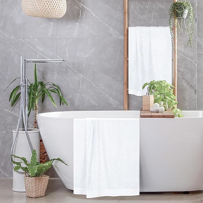 Cotton 2 Pack Oversized Bath Towel Set 28x55 inches, Large Bath Towels, Ultra Absorbant Compact Quickdry & Lightweight Towel, Ideal for Gym Travel Camp Pool - White