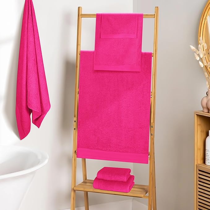 Ultra Soft 6 Pack Cotton Towel Set, Contains 2 Bath Towels 28x55 inch, 2 Hand Towels 16x24 inch & 2 Wash Coths 12x12 inch, Ideal Everyday use, Compact & Lightweight - Hot Pink