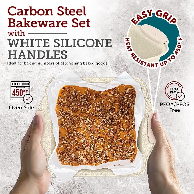 6-Piece Deluxe Nonstick Baking Pan Set - Professional Grade Carbon Steel Bakeware with White Marble Coating & Silicone Handles