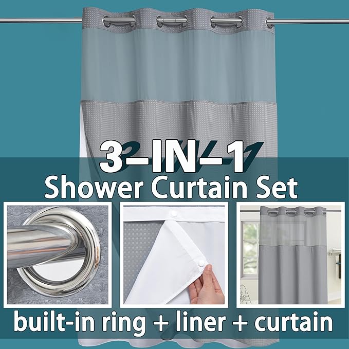 - Removable Inner Liner Design : This high quality shower curtain with a removable snap-in liner, easy to clean and replace if it dirty.