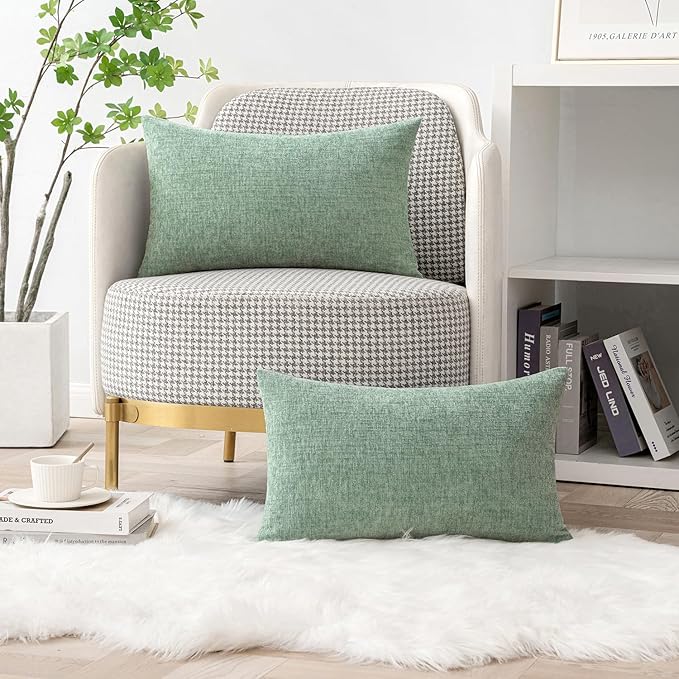 MIULEE Pack of 2 Couch Throw Pillow Covers 12x20 Inch Soft Greyish Green Chenille Pillow Covers for Sofa Living Room Solid Dyed Pillow Cases