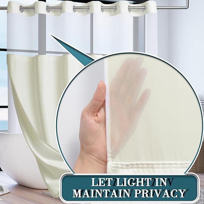Extra Wide No Hook Waffle Weave Shower Curtain with Snap in Liner Set, 108" x 74" Hotel Luxury Beige Shower Curtains for Bathroom with See Through Top Window, Waterproof, Washable 108W x 74H