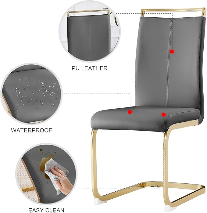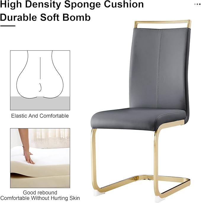 - Sophisticated Seating: Accompanying the table are chairs that perfectly echo its modern aesthetic. Each dining chair combines a sleek silhouette with plush seating, wrapped in high-quality faux leather material, offering both comfort and a visual complement to the table's grandeur.