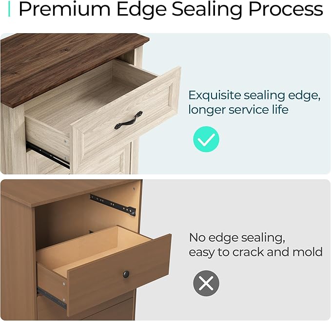- [DURABLE MATERIAL] - Crafted with CARB P2 & TSCA certified eco-friendly manufactured wood, we do care about your health. Exquisite sealing process gives the dresser a waterproof surface and smooth texture, making it long-lasting.