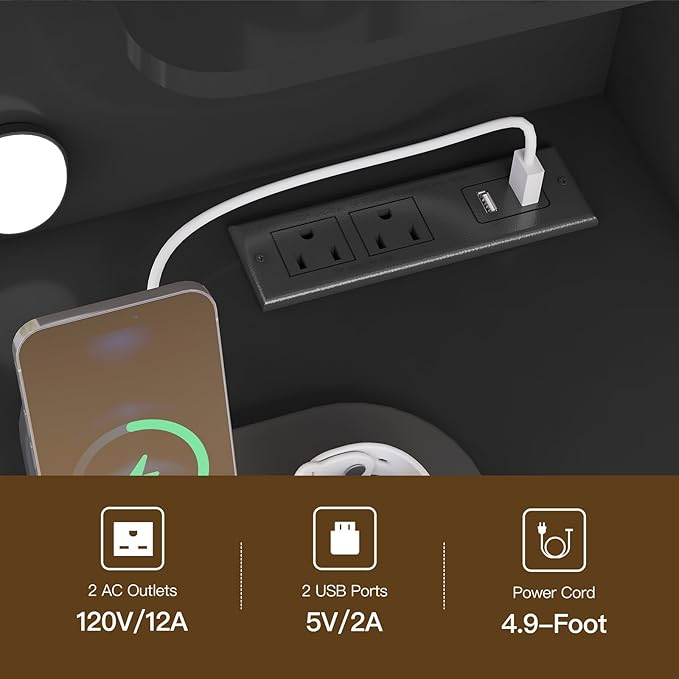 - Built-in Charging Station: Never again struggle to find a power outlet for your hair appliances - this sleek vanity comes with 2 AC & 2 USB ports for hassle-free styling. Stay organized and stylish as you unleash your inner glam goddess with the vanity desk by your side