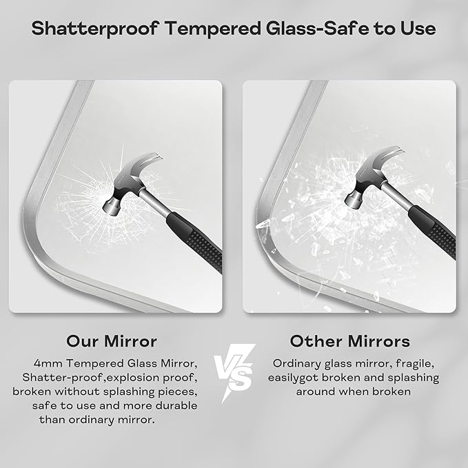 - Exceptional Quality: Our Silver bathroom vanity mirror is made of 4MM tempered glass, more shatterproof and explosion-proof than ordinary mirrors, making it safer to use. The frame is made of advanced aluminum alloy frame, which is waterproof and rust proof, sturdy