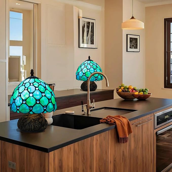 - 【 Small Stained Glass Lamp】This Tiffany lamp measures 8 inches in width and 11 inches in height. The lampshade is made of genuine stained glass, handcrafted with vibrant colors. The base is constructed from durable resin, ensuring sturdiness and reliable stability.