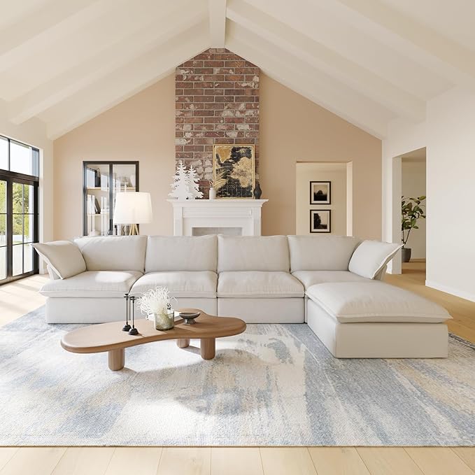 JACH L-Shaped Sectional Couches, Modular Sectional Sofas, Modern Couch Sofa with Chaise Ottoman, Cushion Covers Removable, Two Corners and Two Middle Sofa for Living Room (Beige)