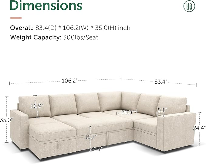 - Product Dimensions : 83.4"D x 106.2"W x 35"H