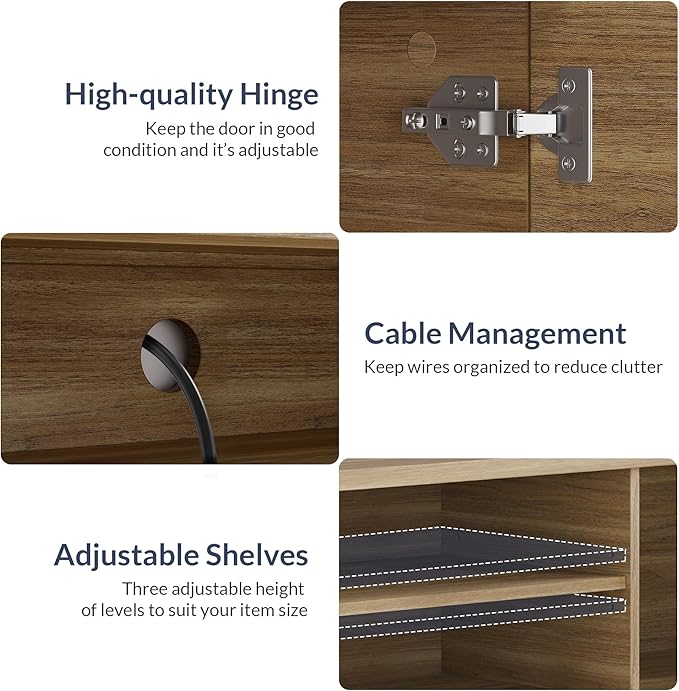 - [Easy Assembly] - With all the necessary accessories included, this TV stand for living room is a breeze to assemble. Each part of this TV media console is clearly labeled and comes with detailed instructions for a hassle-free setup. Say goodbye to searching for extra hardware and tools - this entertainment center with storage ensures a convenient and swift assembly process.