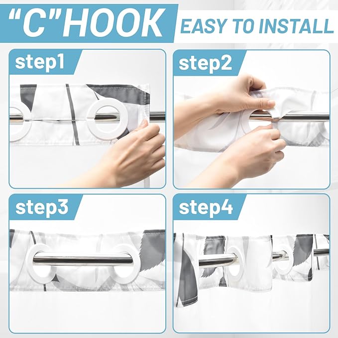 - No hooks needed! This shower curtain designed with "Split Rings" that let you hang them easily, Suitable for various home decor