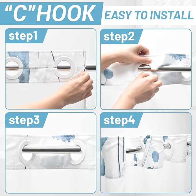 - No hooks needed! This shower curtain designed with "Split Rings" that let you hang them easily, Suitable for various home decor
