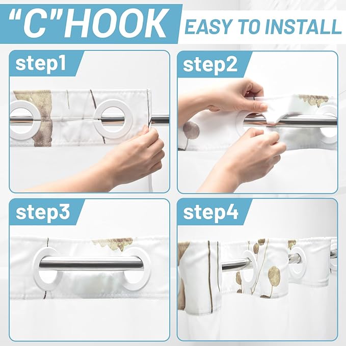 - No hooks needed! This shower curtain designed with "Split Rings" that let you hang them easily, Suitable for various home decor
