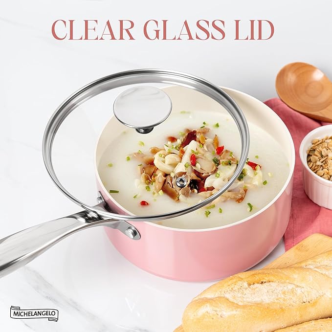 - Healthy Cooking - MICHELANGELO sauce pan is made with non-toxic coating, ensuring a healthy cooking experience for your family. Say goodbye to harmful chemicals such as PTFE, PFOA, lead and cadmium!