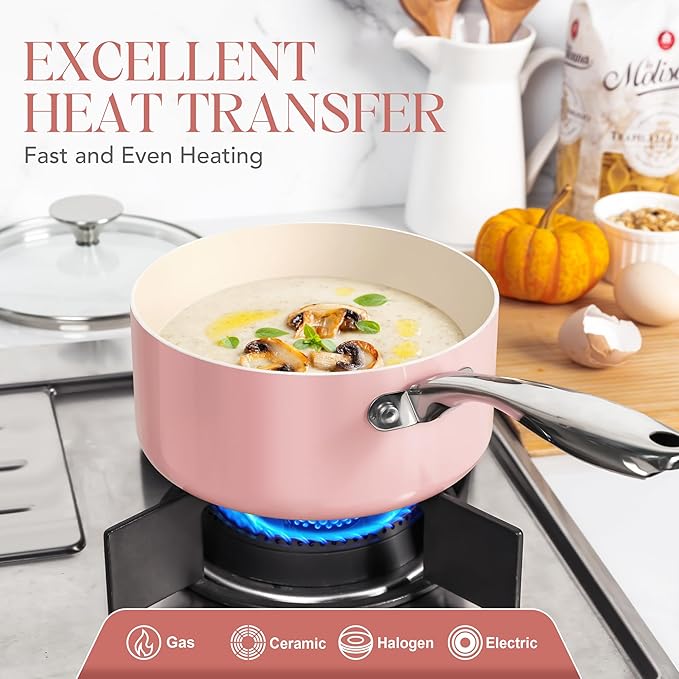 - Durable for Use - Made with high-quality ceramic coating, our sauce pan sets are built to last, known as resistant to scratching, chipping, and peeling.