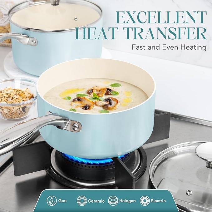 - Durable for Use - Made with high-quality ceramic coating, our sauce pan sets are built to last, known as resistant to scratching, chipping, and peeling.