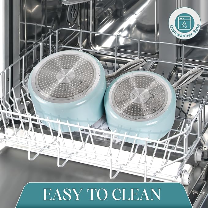 - Effortless Cooking & Cleaning - Our non stick saucepans allow easy release of and cleaning. Non-stick properties make cleaning simple, whether by hand or in the dishwasher.