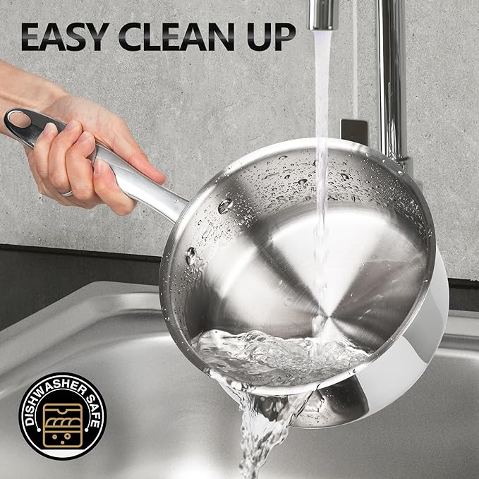 MICHELANGELO 3 Quart Saucepan with Lid, 18/10 Stainless Steel Sauce Pan with Tri-Ply Bottom, 3QT Sauce Pot, Induction Compatible