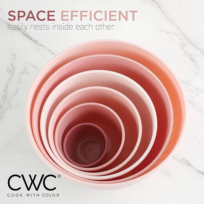 - Cook with Color 12 piece plastic mixing bowl set - non slip bowls with lids; easy to clean, sturdy mixing bowls.
