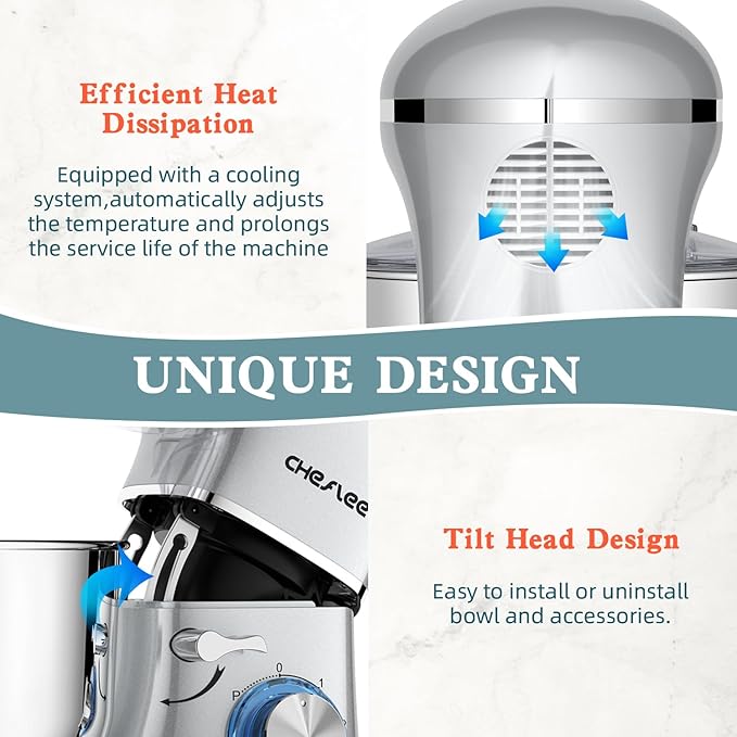 - Durable and Stylish - The CHeflee stand mixer has a powerful 660W pure copper motor,encased in a sleek streamlined design with LED lights serving as stylish power indicator buttons.This kitchen mixer achieves the perfect balance of looks and functionality