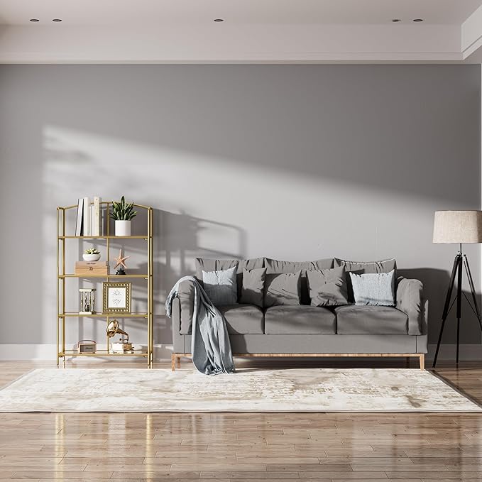 Crofy No Assembly Folding Bookshelf for Living Room, 4 Tier Gold Collapsible Book Shelf for Home Office, Portable Bookcase Storage Organizer