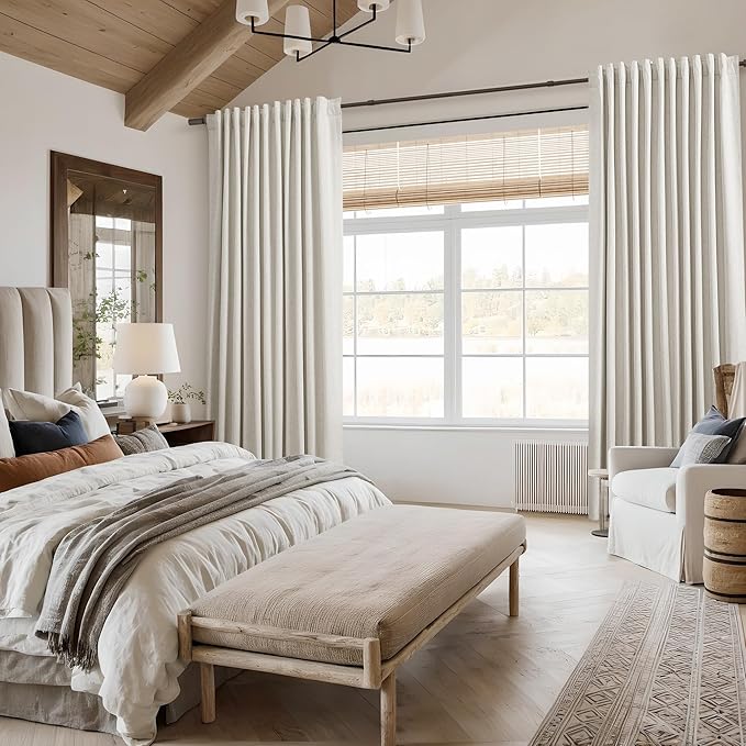 - Natural Linen Blend: These linen blackout curtains are crafted from a natural linen blend fabric, with a linen textured surface that showcases a natural delicate look and a casual cozy feeling. The vertical drape panels offers a premium look that effortlessly complements various home decor styles, including neutral modern, boho chic, farmhouse