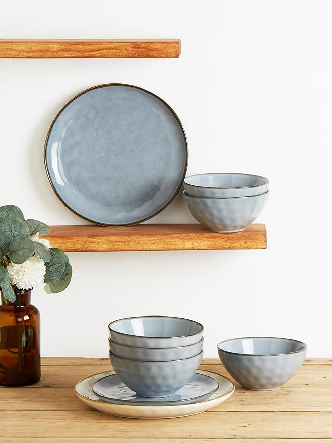 - 【Double Reactive Glaze】Double reactive glaze are combined through firing at high temperatures to create a special and fantastic glaze color. The color of the same set of tableware may have some differences, so that each plate and bowl is unique. This glaze also tends to show different colors depending on the light. The color may be a little different from what you see on the screen