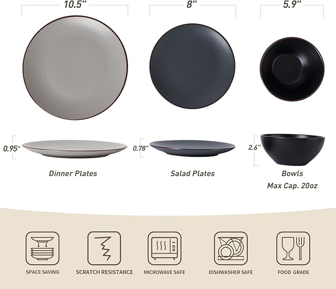- [Set contains]: Plates & bowls set includes 4 of each (10.5" dinner plate, 8" salad plate, 20 oz cereal bowl). Great for gifting, housewarming, hosting or daily use