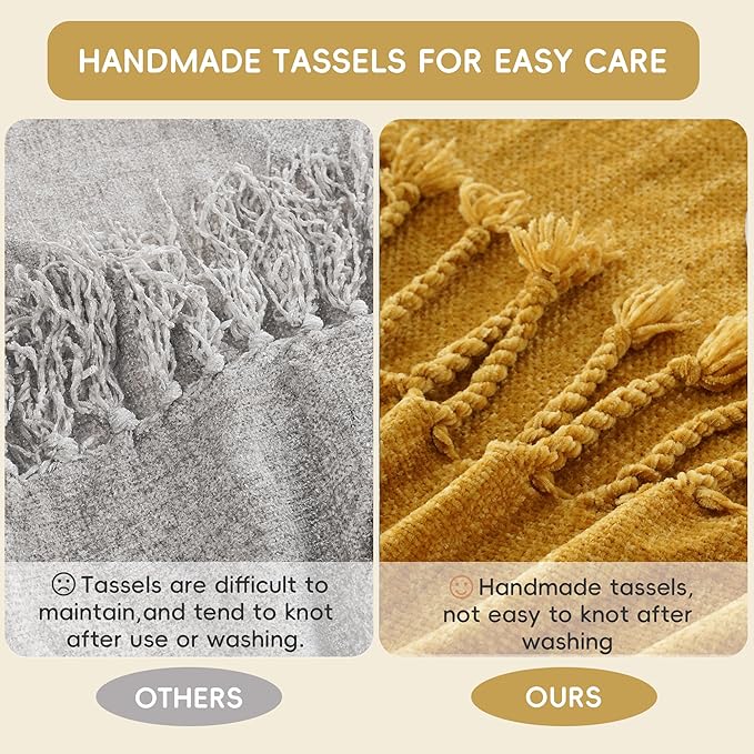 - 【Sturdy & Stylish】Our chenille blankets are made with a superior weave, very well constructed and will not shed, warp or break. Also, the fashionable fringe design adds a touch of style to any space. Whether you're looking to enhance the beauty of your living room or bedroom, the stylish details of this blanket will easily elevate your decor