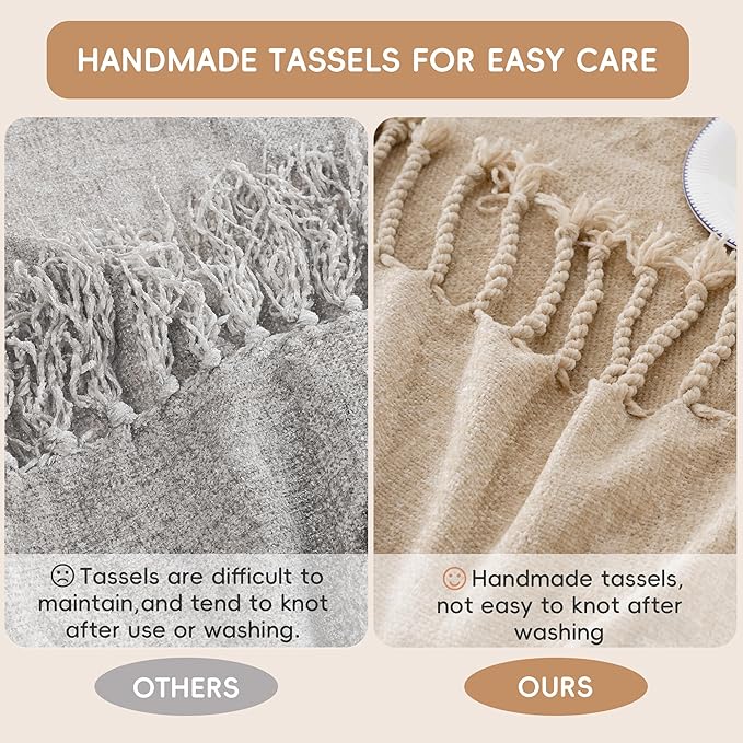 - 【Sturdy & Stylish】Our chenille blankets are made with a superior weave, very well constructed and will not shed, warp or break. Also, the fashionable fringe design adds a touch of style to any space. Whether you're looking to enhance the beauty of your living room or bedroom, the stylish details of this blanket will easily elevate your decor