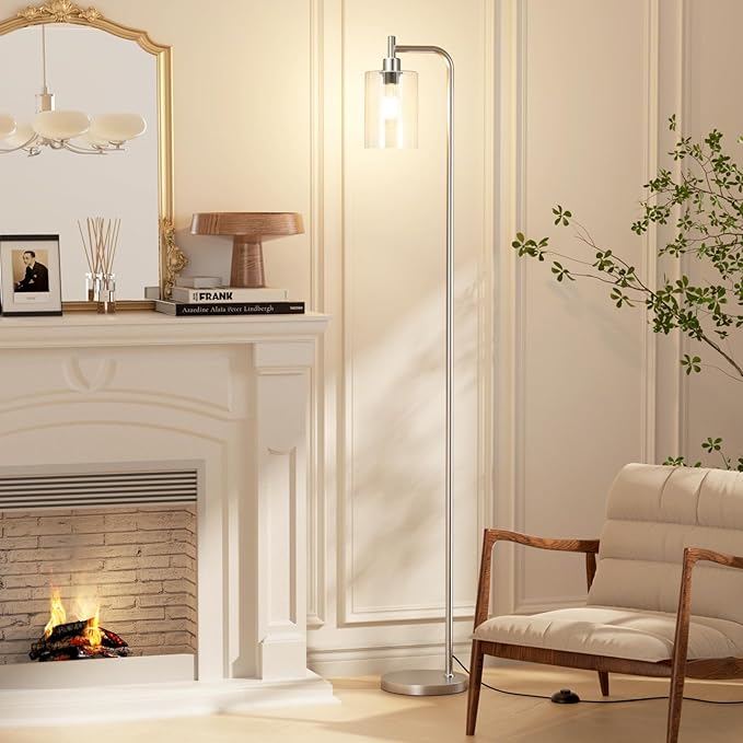 - 【Heavy Base, Safe to Use】- Industrial floor lamp has a highly stable base and light pole and can stand firmly on the floor, which prevents the elderly, children and pets from being overturned. The standing light is equipped with a rust-resistant brushed nickel metal body and a sturdy clear glass shade, which makes it look gorgeous and expensive. Based on the moderate weight of pole lamp, you can easily place it anywhere you want.