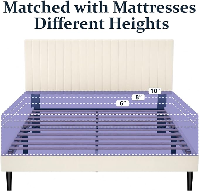- Comfortable and Elegance: The vertical channel tufted headboard is wrapped in smooth velvet and built-in soft foam, introducing a touch of elegance to any bedroom.