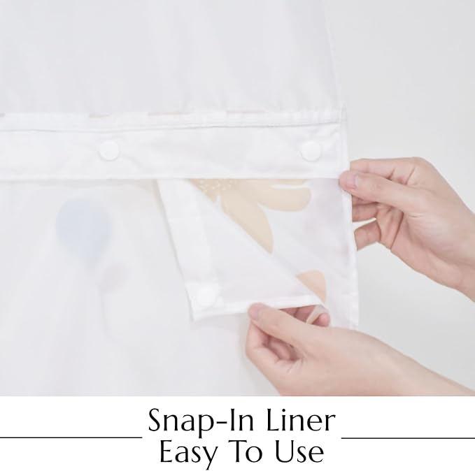 - DOUBLE LAYER: The shower curtain and liner are designed with hidden snap buttons, making it easy to replace the liner. Made from premium fabrics, they protect your privacy