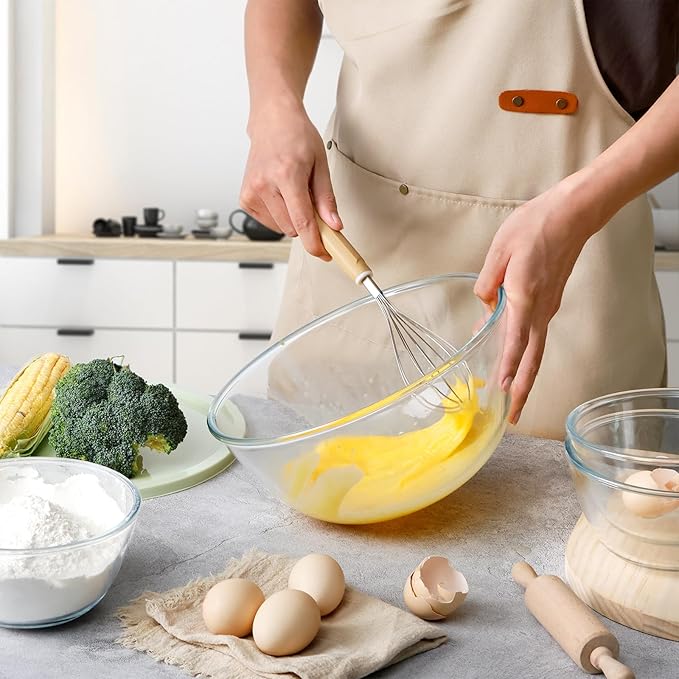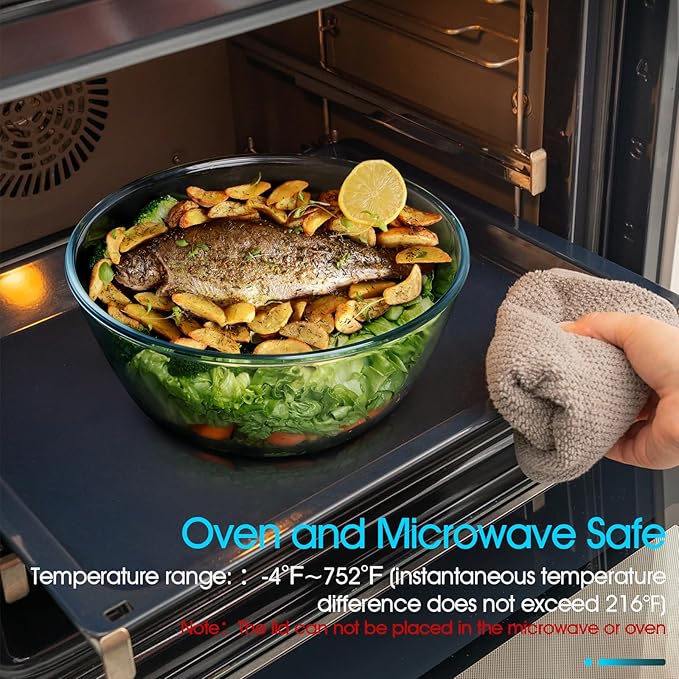 - 【Sleek and Compact Storage】: With its lid securely in place, this large glass mixing bowl doubles as a storage container, keeping your food fresh