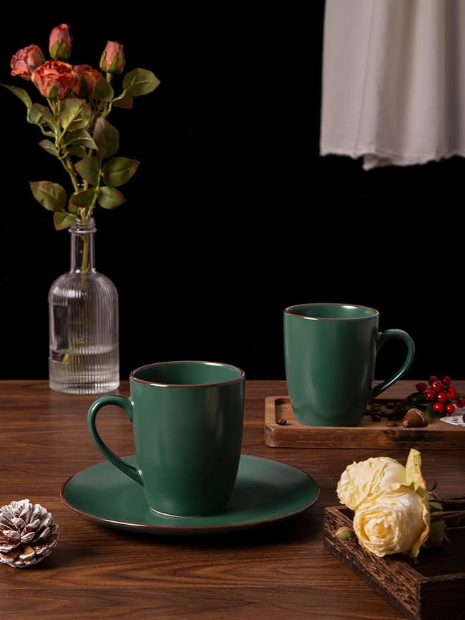famiware Venus Coffee Mugs for 6, 14 oz Mug Set, Dringking Cup with Handle for Coffee, Tea, Cocoa, Milk, Dark Green
