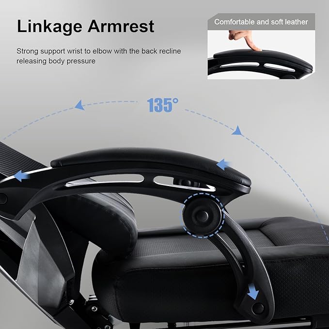 - Adjustable Recline and Footrest: Customize your seating position with a 135-degree recline and extendable footrest for optimal relaxation.