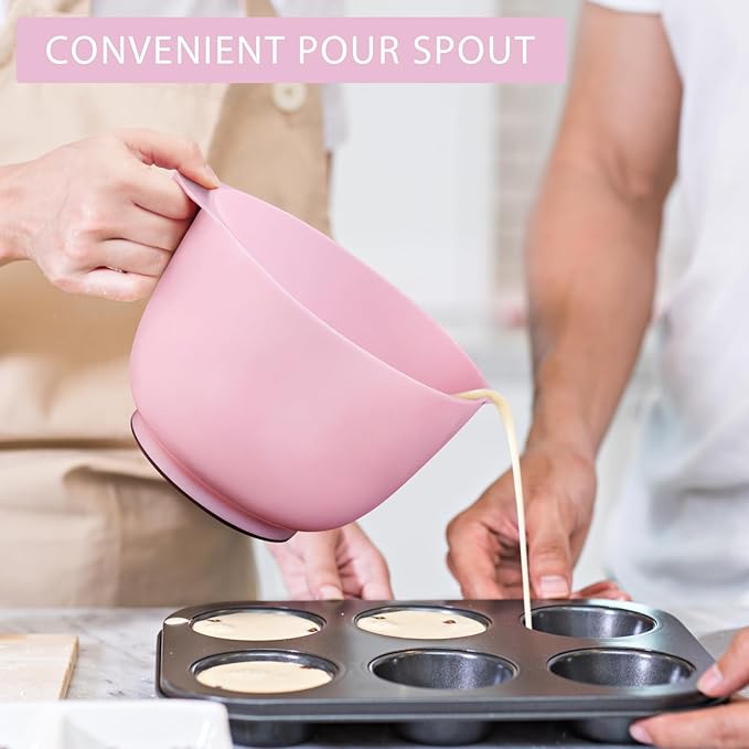 - [Non-slip & non-stinky] -The rubber layer at the base will keep these batter bowls from skidding or slipping during mixing. Ingredients won’t stick with the bowl’s non-stick surface, making lengthy mixing less tiring.