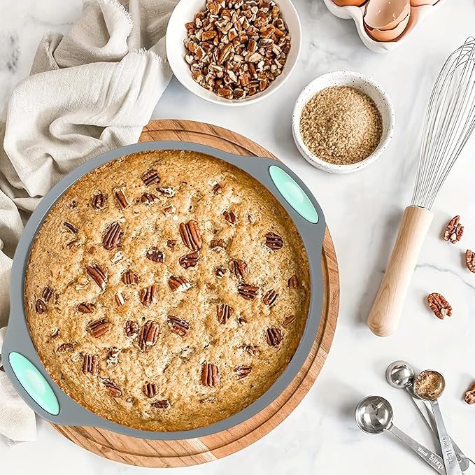To encounter 45 Pieces Silicone Bakeware Set, Heat Resistant Baking Pans, Nonstick Baking Molds for Cake, Bread and Cupcake, with Measuring Cups and Spoons Set, Light Grey