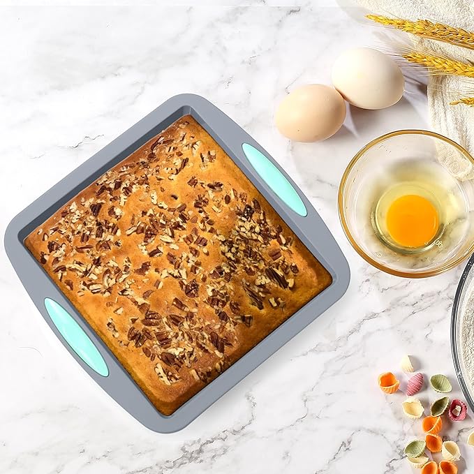 - What You Get - The silicone baking set include a round cake pan, a square cake pan, a chiffon cake pan, a loaf pan, a baking sheet, 17 pack measuring cups and spoons set, 24 pack silicone cupcake mold.