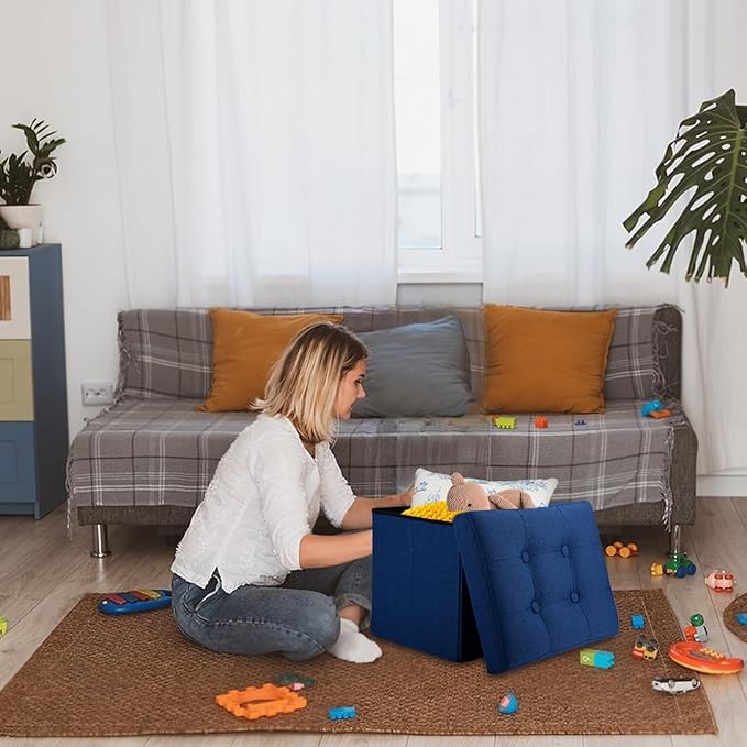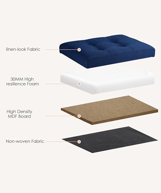 - Exquisite and sturdy: The storage ottoman bench is made of thick E1 standard MDF construction, sturdy and sturdy. The top cover and the exterior are made of high resilience thick foam soft and linen fabric which makes the foot stool both beautiful and practical as well as soft and comfortable
