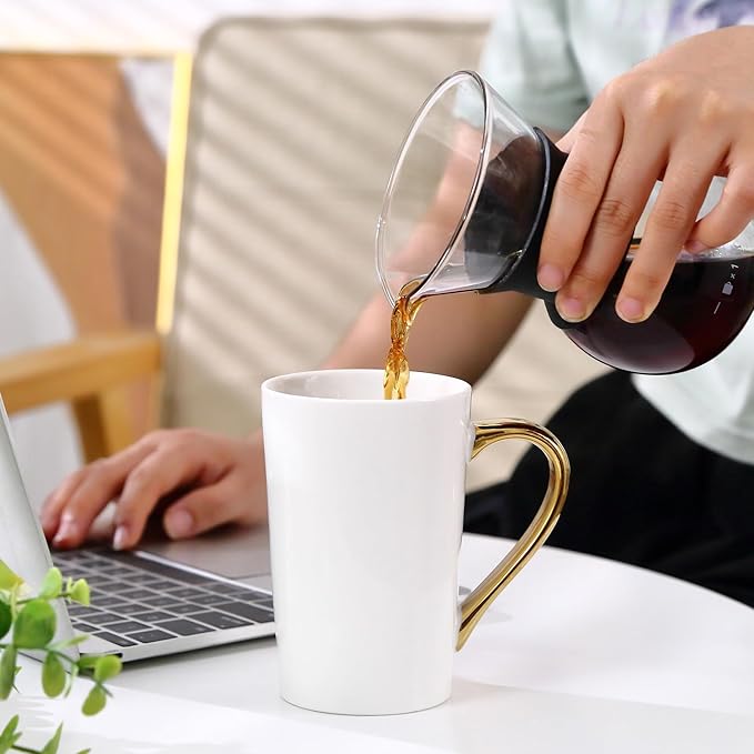 - 【12oz Capacity with Ergonomic Gold Handle】 Designed for comfort and luxury. Each mug in this set holds a perfect 12oz portion of your favorite beverage. The ergonomic gold handle provides a secure and comfortable grip, enhancing your daily coffee ritual with a feel of elevated luxury.