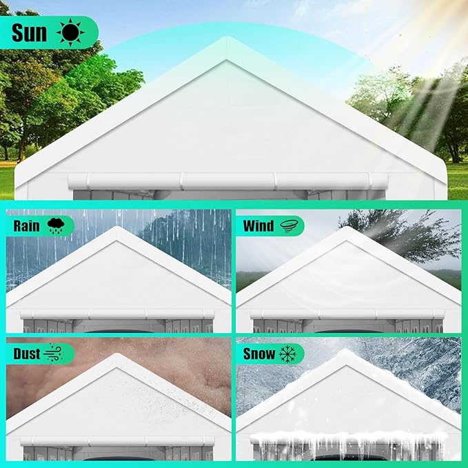 - All-Weather Resistance - The industrial-grade, UV-resistant 160 G Tarp cover of the carport guarantees unmatched protection against the elements. Whether it's the scorching sun, torrential rain, or icy snow, your vehicles remain shielded 365 days a year, maintaining their pristine condition.