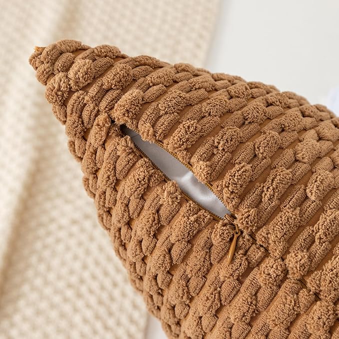 Kevin Textile Throw Pillow Covers Soft Corduroy Decorative Set of 2 Boho Striped Pillow Covers Pillowcases Farmhouse Home Decor for Couch Bed Sofa Living Room 24x24 Inch Khaki