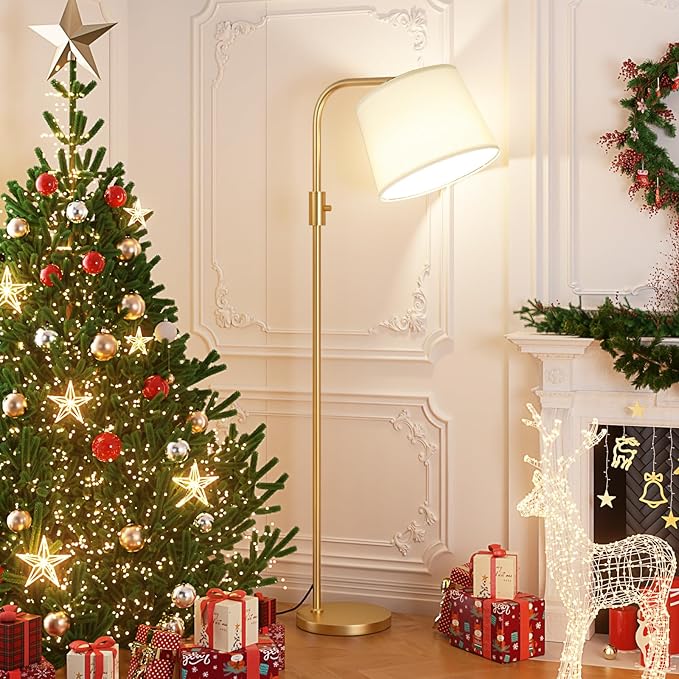 Ambimall Fully Dimmable Floor Lamp - Floor Lamps 9W LED Light Bulbs, Standing Lamps for Living Room, Modern Standing Light Tall Lamp for Bedroom (Gold and White)