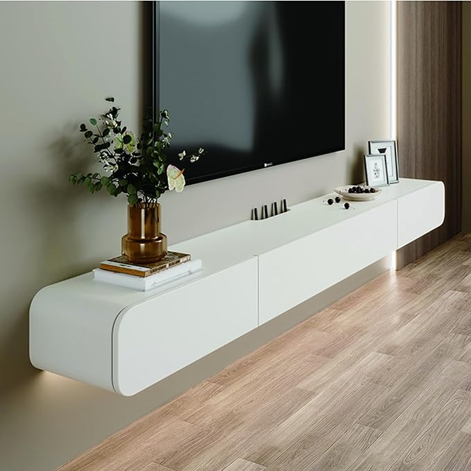 - 【High-quality solid wood】: The floating TV cabinet is made of high-quality rubber wood, rejecting artificial panels. Stable and durable structure, white high temperature paint, easy to clean, simple design makes this suspended TV stand can easily match any style of room or furniture, adding a touch of elegance and vitality.size:120*24*18cm (47.2*9.44*7in), 160*24*18cm (63*9.44*7in)