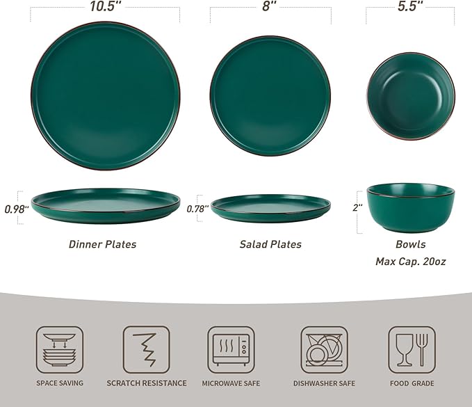- 【FOOD GRADE NATURAL GLAZE】All of our dinnerware sets are made of food grade glaze. You can safely use them to serve steaks, salads or desserts, no need to worry about any harmful substances leaching into the food.