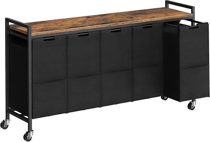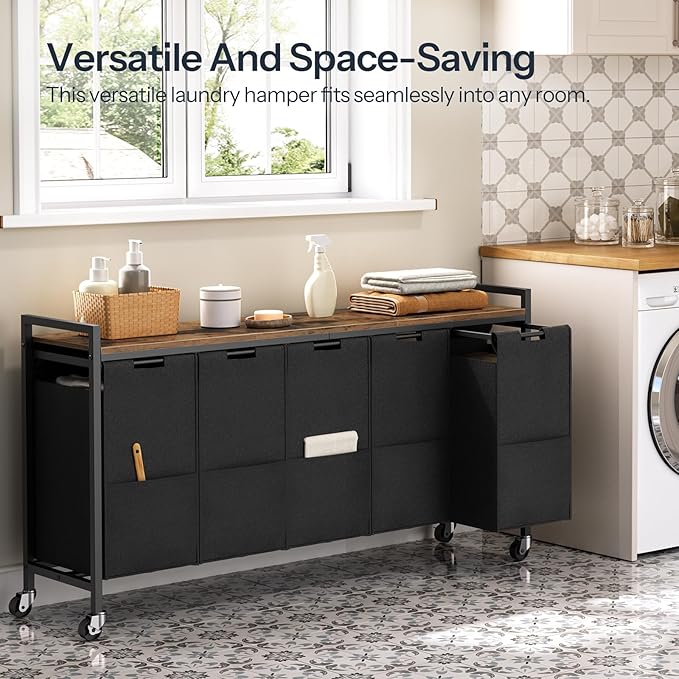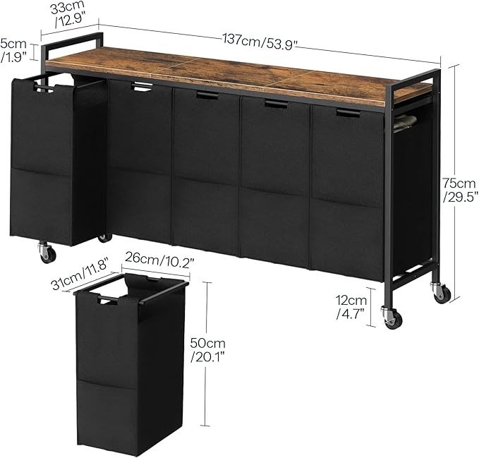 - Spacious and Removable Laundry Bags: Measuring 53.9"L x 12.9"W x 29.5"H, this laundry basket organizer has 5 laundry bags, each with a capacity of 40 L/10.5 Gallon, ideal for sorting various family laundry items, including coats, socks, dark and light-colored clothes