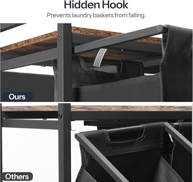 - Premium Laundry Hamper: Crafted with high-quality particleboard and a robust metal frame, this laundry sorter offers durability and stability. The top panel can support up to 100 lb, while the Oxford fabric laundry bags, each capable of holding 30 lb, meeting your daily laundry needs